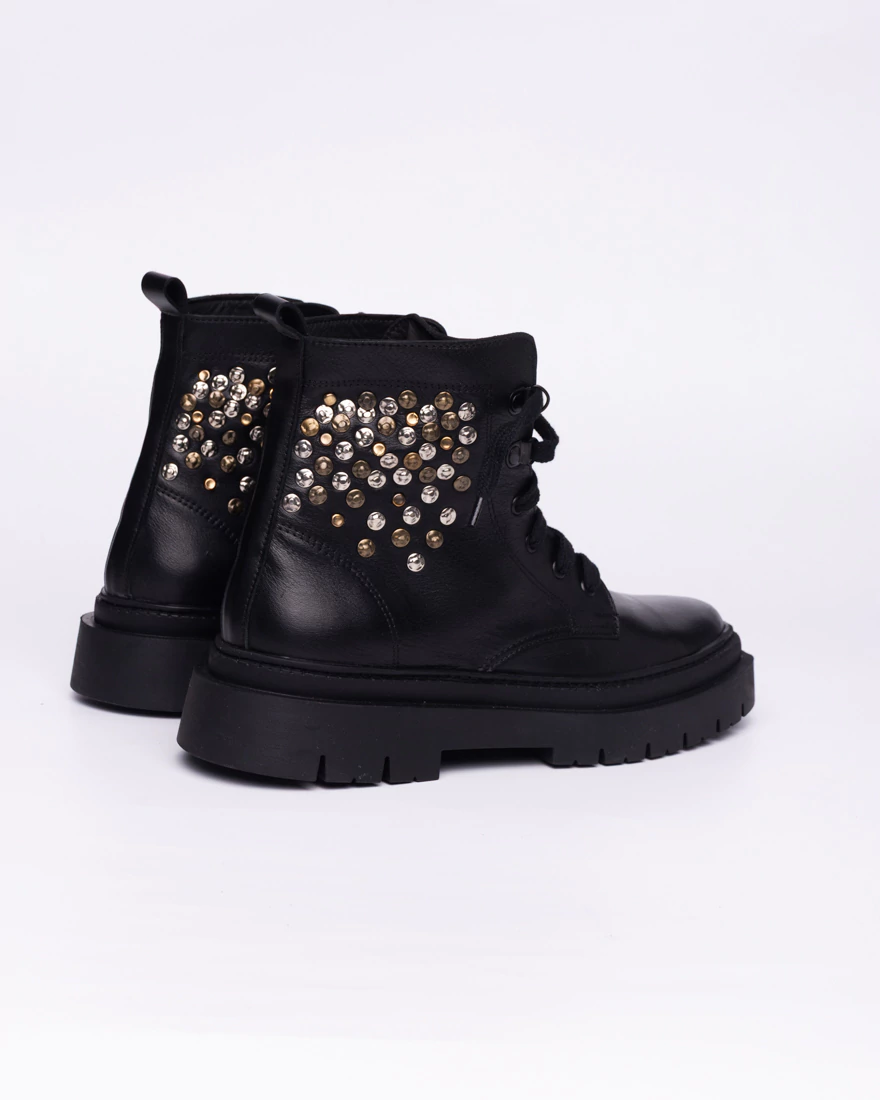 Estos borcegos combinan estilo y carácter con un diseño único en uno de sus laterales: tachas colocadas a mano que le dan un toque auténtico y artesanal. Están confeccionados íntegramente en cuero, tanto por dentro como por fuera, y completamente cocidos para asegurar resistencia y durabilidad. Su suela antideslizante te brinda estabilidad en cada paso. Ideales para quienes buscan un calzado con actitud y calidad superior.